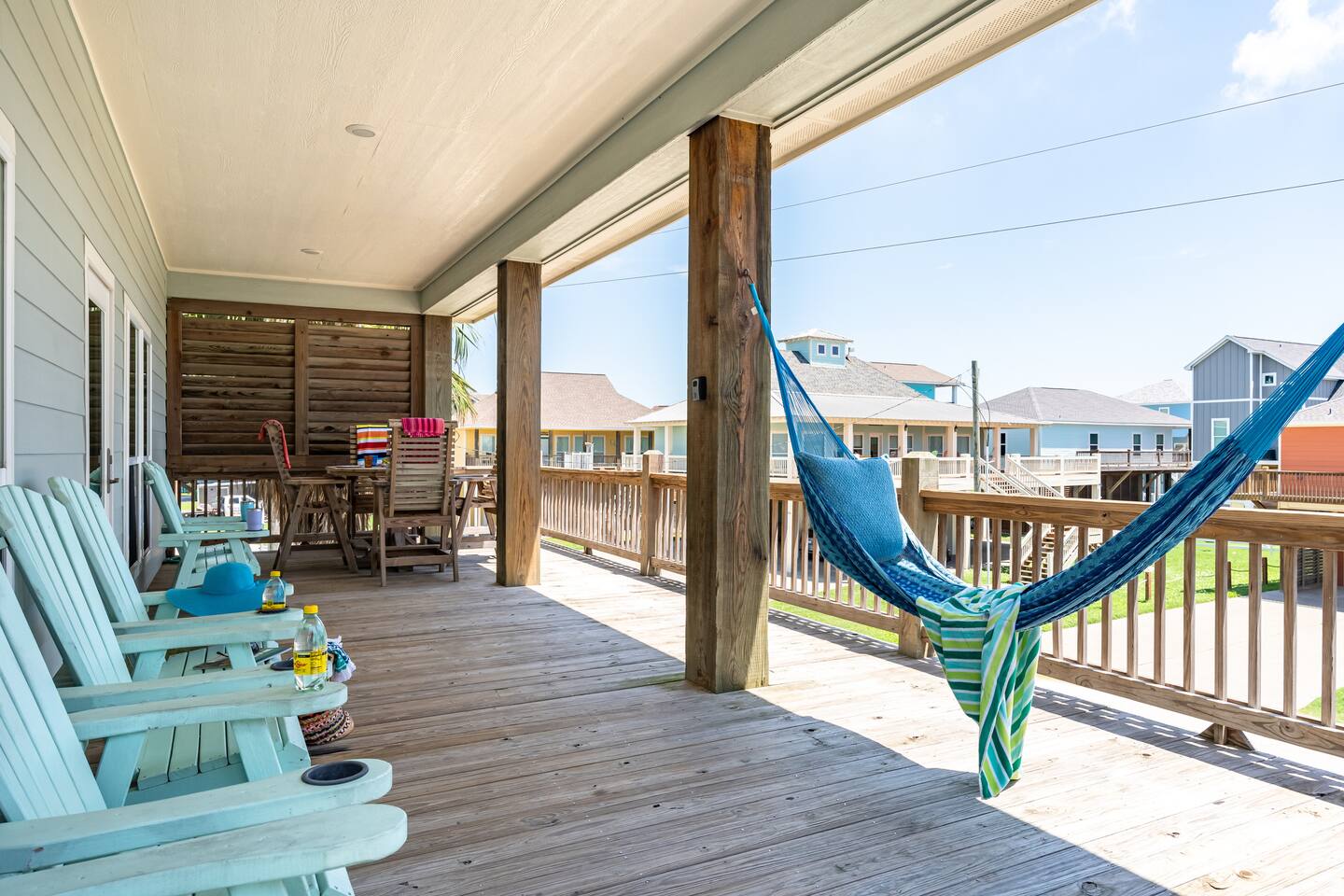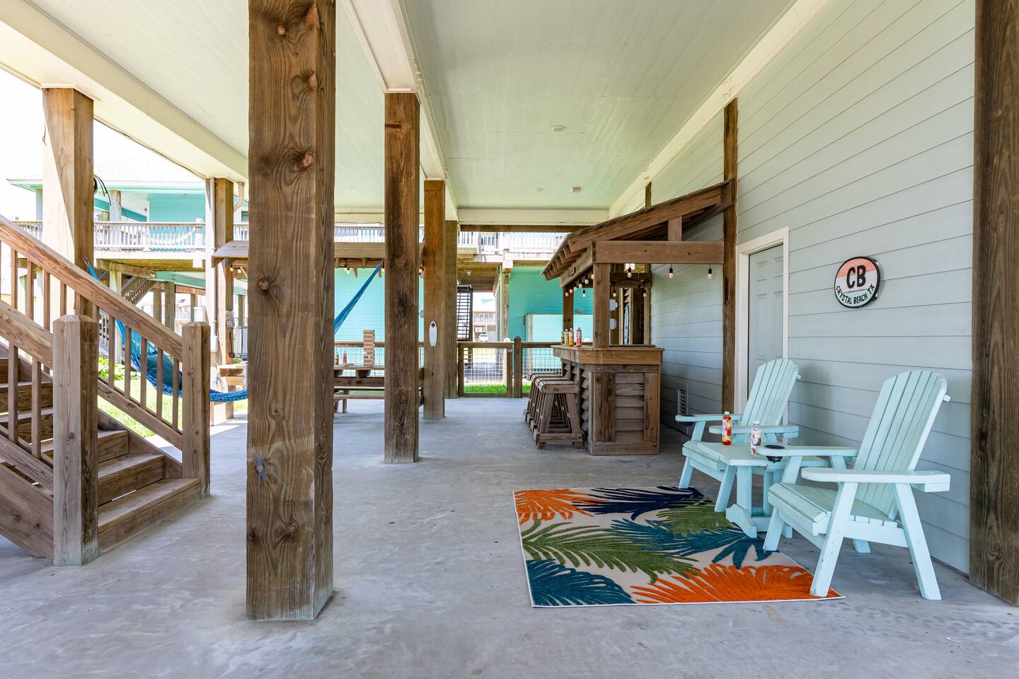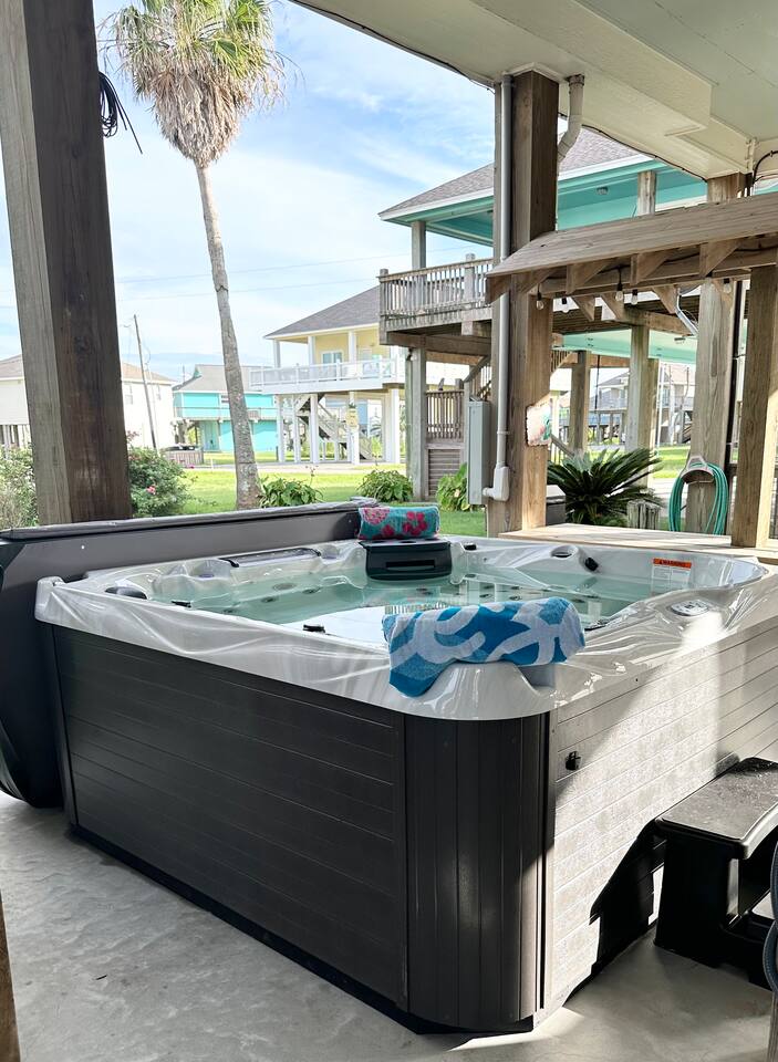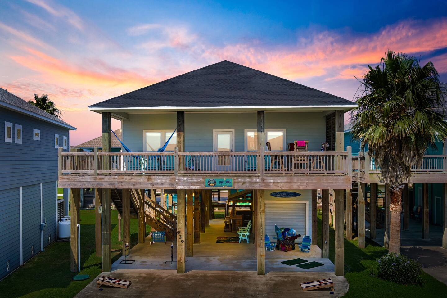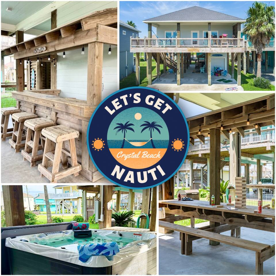Let's Get Nauti is a spacious and beautifully decorated home that offers: • 4 Bedrooms. Each room is designed with relaxation in mind, providing cozy beds and ample storage. • Gourmet Kitchen: Fully equipped with modern appliances, perfect for preparing delicious meals. • Hot Tub: Relax in the 6-person hot tub by the Tiki Bar. This makes the downstairs area a perfect play area. • BBQ Area: Enjoy outdoor dining and grilling with family and friends in our designated BBQ area. • Tiki Bar: Unwind with a refreshing drink at our tiki bar, creating the perfect tropical atmosphere. • Expansive Deck: Take in the stunning water views from our large deck, complete with comfortable seating for everyone. • Dedicated Workspace: Work or study from the desk and chair set up for you to take a vacation and get your work done. Whether you're looking to relax by the water, entertain guests, or explore the local attractions, our beach house has it all. Book your vacation today and experience the perfect blend of luxury and comfort! The space GUEST ACCESS: ֍ Self-check in with your code, sent 48 hours before check in THE SPACE: ֍ 4-bedrooms, 2 baths, 9 beds – sleeps 14 ֍ 1 full kitchen with all the comforts of home ֍ Gulf views from the deck – relax in the hammock or enjoy a cocktail at the bar top table ֍ Large outdoor area downstairs with a 6-person Hot tub, Tiki bar, games, and multiple seating options ֍ Beach towels, chairs, wagon, and assorted beach toys ֍ Giant Connect Four, corn hole, ladder ball, spike ball ֍ Outdoor shower station ֍ Dog friendly with Fenced Dog run ($230) additional dog fee up to 2 dogs - Make sure to add your dog when adding count. The button is right below the kids button) ֍ Charcoal grill - BYOC ֍ Family-friendly bunk room with individual lights and outlets ֍ High chair, pack-n-play, and kid-friendly utensils provided ֍ Smart TVs in all bedrooms and living room– bring your own log-ins for streaming services. No cable tv is provided. ֍ Wi-Fi, puzzles, books, games for non-beach days ֍ All linens for beds and bath towels are included ֍ Starter set of dishwasher and laundry detergent, toilet paper, paper towels, hand soap at all sinks, and coffee (coffee on us the first morning! Small stash of K-cups, cream, sugar and filters provided) WHERE YOU’LL STAY: ֍ Master suite King size bed, dresser, Smart TV, Ceiling fan, Closet, Luxury en suite bathroom with shower, separate deep bathtub, granite countertop. Highchair and pack in play are in the closet. ֍ Front bedroom 2 Queen size beds, Smart TV, Ceiling fan, dresser with drawers ֍ Bunk room 2 Twin over Twin bunk bed each with a light and power outlet, Stairs in the middle, Smart TV, fan ֍ Back room 2 Queen size beds, Smart TV, Ceiling fan, dresser with drawers, closet COMMON AREAS ֍ Kitchen Dishes, cutlery, and glasses for 14, Pots and pans, multi-option coffee pot (single brew with K-cup; whole pot drip), baking dishes (sheet pans, glass baking dish), Air Fryer, Crock Pot, Rice Cooker, waffle maker, electric griddle, spice cabinet, mixing bowls, reusable storage containers, dine in attached dining area or at kitchen island ֍ Living room Comfortable seating for 6+, Smart TV and stand with games, books and puzzles, Coffee table ֍ Laundry room Stackable washer and dryer, Iron and ironing board, starter pack of laundry detergent ֍ Deck View of the gulf, Bar top table with 4 tall chairs, 6 Adirondack chairs, hammock, gate at stairs for safety ֍ Bottom level Outdoor sand shower, Charcoal grill (bring your own charcoal), beach gear – chairs, beach wagon, umbrella, small carry coolers and assorted toys. Games: corn hole, ring toss, giant Connect-4, giant Jenga, Spike ball. Outdoor dining table with seating for 12. Tiki bar with 4 stools, fenced dog run and parking for 6 cars. MISCELLANEOUS: ֍ Please read through and ensure you agree to everything in the ***SHORT-TERM RENTAL AGREEMENT and ADDENDUM A - RENTAL RULES*** in the House Rules section. This is important to keep you safe and informed. ֍ Hot Tub cleaning occurs every Tuesday. The technician will need access to the hot tub only. ֍ If you are planning a drunken party, please choose a different location. We have some full-time resident neighbors. Quiet hours are 10:00 pm to 7:00 am. ֍ Person booking must be at least 24 years old and have a government issued photo ID on file with the booking platform. The booker must stay at the property for the duration of the stay. ֍ If you are having an event, please reach out to us and let us know what type of event you would like to have. Additional cleaning fees could apply. Our cleaner will make that determination. ֍ Dog friendly for up to 2 dogs less that are fully house and crate trained. Dogs are to use the bathroom only in the fenced dog run, not on the deck or on the concrete. Please pick up your dog’s mess and throw away. Supplies are provided. You will need to provide a crate for your dog as they are not to be left unattended while you are not home. NO dogs are allowed on the furniture. If your dog is allowed to sleep with you, our home may not be the best fit. Please don’t sneak a dog in. Our cleaning service can tell and charge us extra. That few will be charged back to you. Do the right thing and inform of us your dog. ֍ On your way in, stop at The Big Store for all your needs. They have groceries, supplies and a parking permit to park on the beach. The Big Store is a few minute drive from Let’s Get Nauti. ֍ If you don’t want to take your car to the beach, you can Rent a golf cart from Jay's Golf Carts. They'll deliver and pick up. ֍ Get a Day Pass to Margaritaville for year round heated pools, concerts, arcade, and swim up pool bar. ֍ Watch the dolphins as you ride over on the Ferry! ֍ Head back to Galveston on the 24 hour Free Ferry for night life! PROTECT YOUR VACATION WITH TRAVEL INSURANCE! We highly recommend purchasing travel insurance for your vacation rental stay. Whi