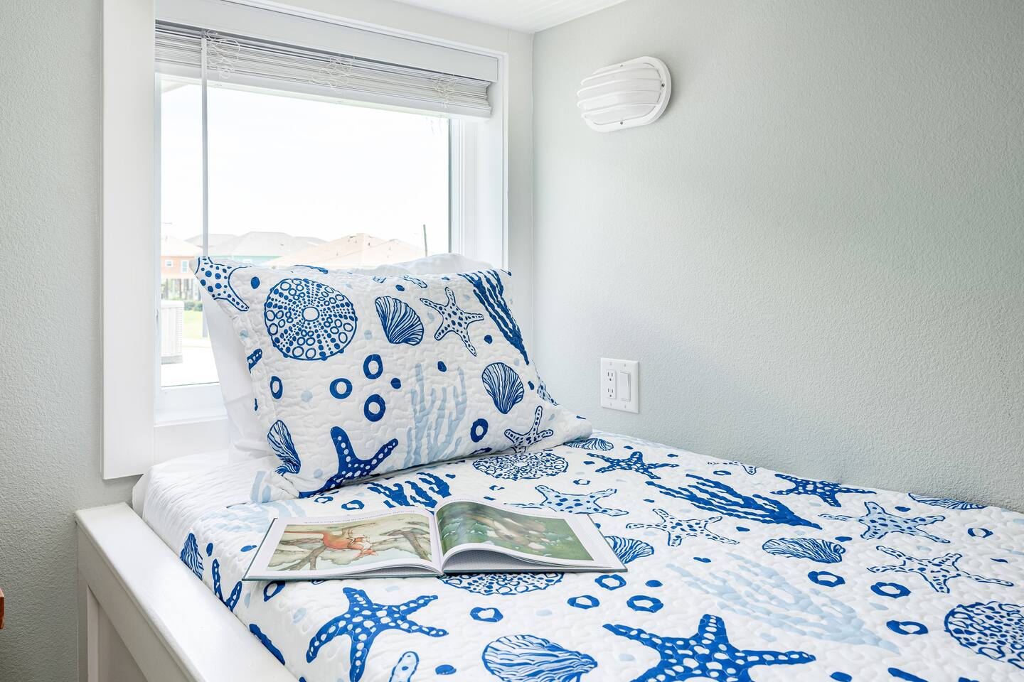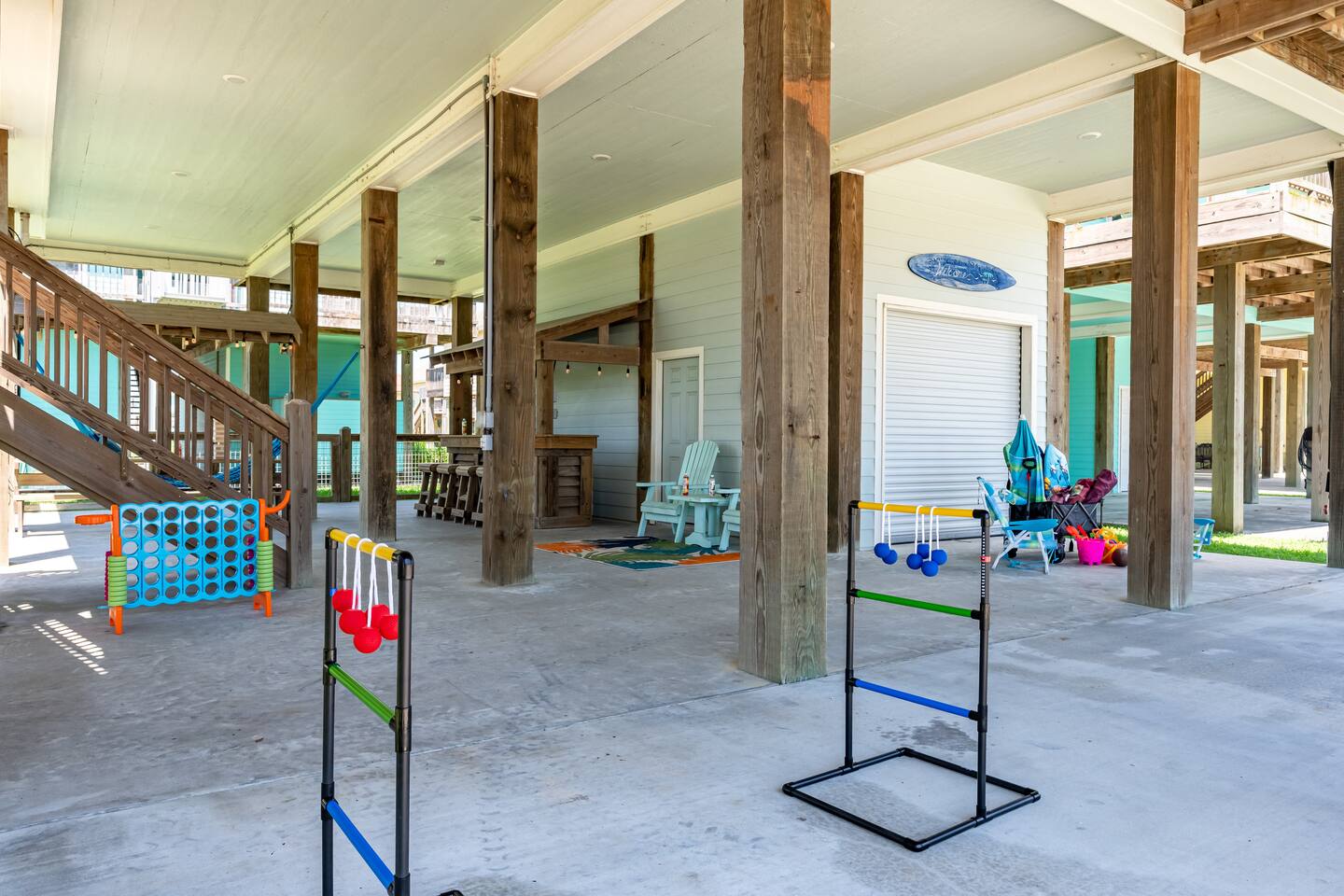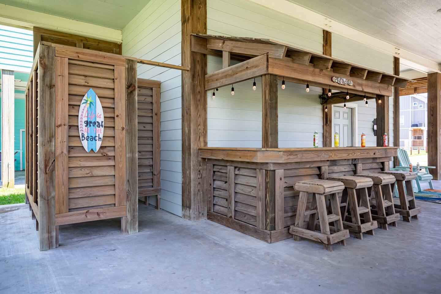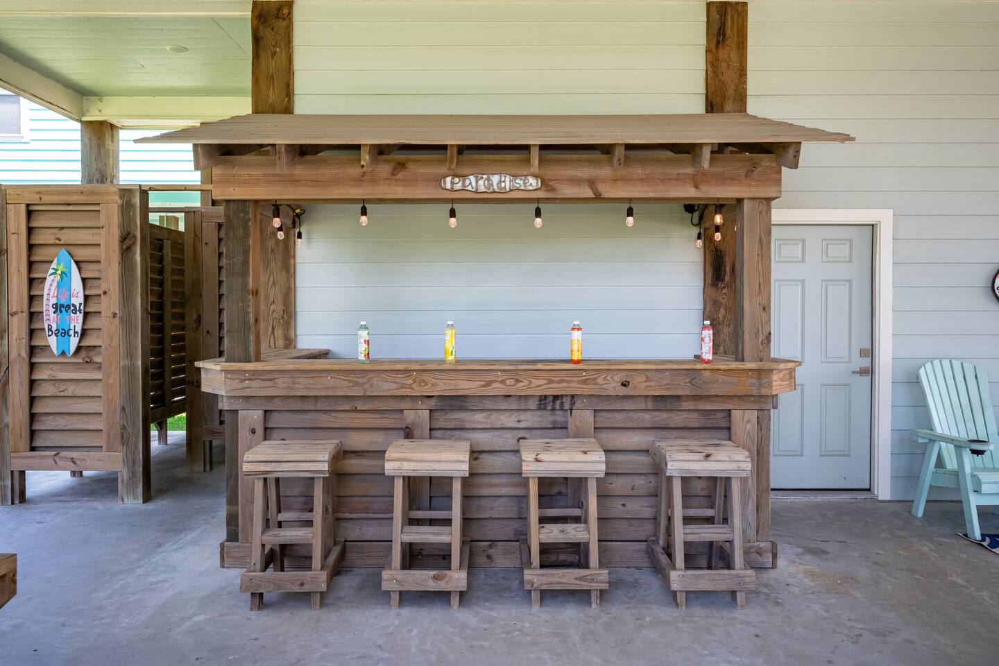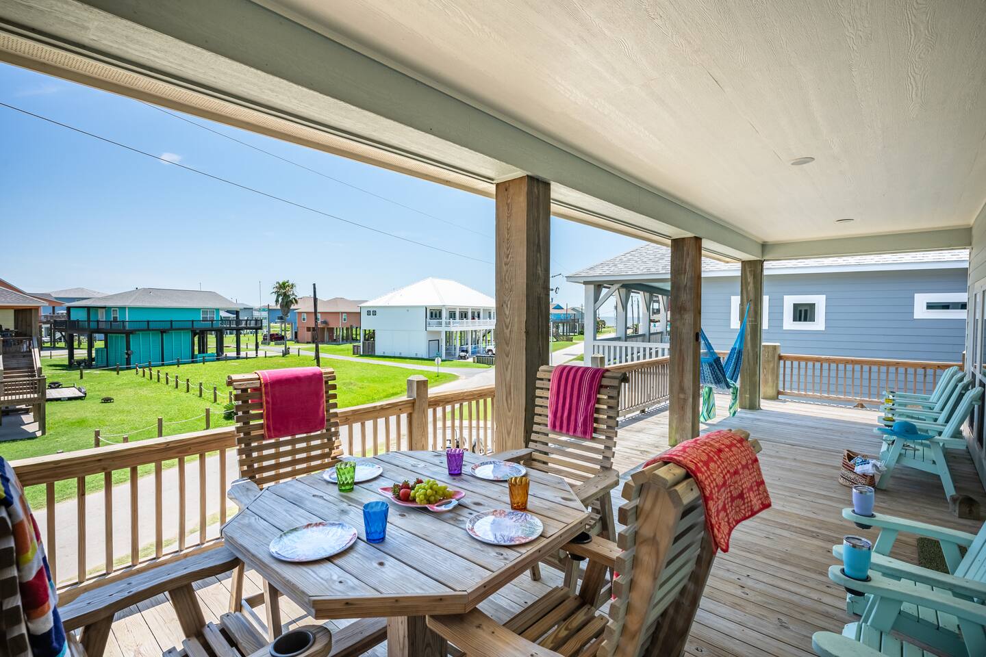 Let's Get Nauti is a spacious and beautifully decorated home that offers: • 4 Bedrooms. Each room is designed with relaxation in mind, providing cozy beds and ample storage. • Gourmet Kitchen: Fully equipped with modern appliances, perfect for preparing delicious meals. • Hot Tub: Relax in the 6-person hot tub by the Tiki Bar. This makes the downstairs area a perfect play area. • BBQ Area: Enjoy outdoor dining and grilling with family and friends in our designated BBQ area. • Tiki Bar: Unwind with a refreshing drink at our tiki bar, creating the perfect tropical atmosphere. • Expansive Deck: Take in the stunning water views from our large deck, complete with comfortable seating for everyone. • Dedicated Workspace: Work or study from the desk and chair set up for you to take a vacation and get your work done. Whether you're looking to relax by the water, entertain guests, or explore the local attractions, our beach house has it all. Book your vacation today and experience the perfect blend of luxury and comfort! The space GUEST ACCESS: ֍ Self-check in with your code, sent 48 hours before check in THE SPACE: ֍ 4-bedrooms, 2 baths, 9 beds – sleeps 14 ֍ 1 full kitchen with all the comforts of home ֍ Gulf views from the deck – relax in the hammock or enjoy a cocktail at the bar top table ֍ Large outdoor area downstairs with a 6-person Hot tub, Tiki bar, games, and multiple seating options ֍ Beach towels, chairs, wagon, and assorted beach toys ֍ Giant Connect Four, corn hole, ladder ball, spike ball ֍ Outdoor shower station ֍ Dog friendly with Fenced Dog run ($230) additional dog fee up to 2 dogs - Make sure to add your dog when adding count. The button is right below the kids button) ֍ Charcoal grill - BYOC ֍ Family-friendly bunk room with individual lights and outlets ֍ High chair, pack-n-play, and kid-friendly utensils provided ֍ Smart TVs in all bedrooms and living room– bring your own log-ins for streaming services. No cable tv is provided. ֍ Wi-Fi, puzzles, books, games for non-beach days ֍ All linens for beds and bath towels are included ֍ Starter set of dishwasher and laundry detergent, toilet paper, paper towels, hand soap at all sinks, and coffee (coffee on us the first morning! Small stash of K-cups, cream, sugar and filters provided) WHERE YOU’LL STAY: ֍ Master suite King size bed, dresser, Smart TV, Ceiling fan, Closet, Luxury en suite bathroom with shower, separate deep bathtub, granite countertop. Highchair and pack in play are in the closet. ֍ Front bedroom 2 Queen size beds, Smart TV, Ceiling fan, dresser with drawers ֍ Bunk room 2 Twin over Twin bunk bed each with a light and power outlet, Stairs in the middle, Smart TV, fan ֍ Back room 2 Queen size beds, Smart TV, Ceiling fan, dresser with drawers, closet COMMON AREAS ֍ Kitchen Dishes, cutlery, and glasses for 14, Pots and pans, multi-option coffee pot (single brew with K-cup; whole pot drip), baking dishes (sheet pans, glass baking dish), Air Fryer, Crock Pot, Rice Cooker, waffle maker, electric griddle, spice cabinet, mixing bowls, reusable storage containers, dine in attached dining area or at kitchen island ֍ Living room Comfortable seating for 6+, Smart TV and stand with games, books and puzzles, Coffee table ֍ Laundry room Stackable washer and dryer, Iron and ironing board, starter pack of laundry detergent ֍ Deck View of the gulf, Bar top table with 4 tall chairs, 6 Adirondack chairs, hammock, gate at stairs for safety ֍ Bottom level Outdoor sand shower, Charcoal grill (bring your own charcoal), beach gear – chairs, beach wagon, umbrella, small carry coolers and assorted toys. Games: corn hole, ring toss, giant Connect-4, giant Jenga, Spike ball. Outdoor dining table with seating for 12. Tiki bar with 4 stools, fenced dog run and parking for 6 cars. MISCELLANEOUS: ֍ Please read through and ensure you agree to everything in the ***SHORT-TERM RENTAL AGREEMENT and ADDENDUM A - RENTAL RULES*** in the House Rules section. This is important to keep you safe and informed. ֍ Hot Tub cleaning occurs every Tuesday. The technician will need access to the hot tub only. ֍ If you are planning a drunken party, please choose a different location. We have some full-time resident neighbors. Quiet hours are 10:00 pm to 7:00 am. ֍ Person booking must be at least 24 years old and have a government issued photo ID on file with the booking platform. The booker must stay at the property for the duration of the stay. ֍ If you are having an event, please reach out to us and let us know what type of event you would like to have. Additional cleaning fees could apply. Our cleaner will make that determination. ֍ Dog friendly for up to 2 dogs less that are fully house and crate trained. Dogs are to use the bathroom only in the fenced dog run, not on the deck or on the concrete. Please pick up your dog’s mess and throw away. Supplies are provided. You will need to provide a crate for your dog as they are not to be left unattended while you are not home. NO dogs are allowed on the furniture. If your dog is allowed to sleep with you, our home may not be the best fit. Please don’t sneak a dog in. Our cleaning service can tell and charge us extra. That few will be charged back to you. Do the right thing and inform of us your dog. ֍ On your way in, stop at The Big Store for all your needs. They have groceries, supplies and a parking permit to park on the beach. The Big Store is a few minute drive from Let’s Get Nauti. ֍ If you don’t want to take your car to the beach, you can Rent a golf cart from Jay's Golf Carts. They'll deliver and pick up. ֍ Get a Day Pass to Margaritaville for year round heated pools, concerts, arcade, and swim up pool bar. ֍ Watch the dolphins as you ride over on the Ferry! ֍ Head back to Galveston on the 24 hour Free Ferry for night life! PROTECT YOUR VACATION WITH TRAVEL INSURANCE! We highly recommend purchasing travel insurance for your vacation rental stay. Whi