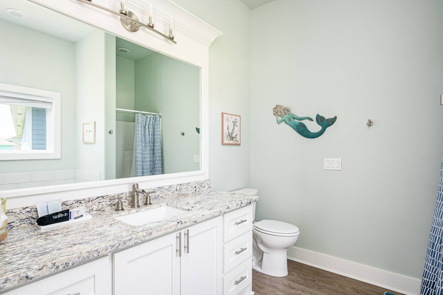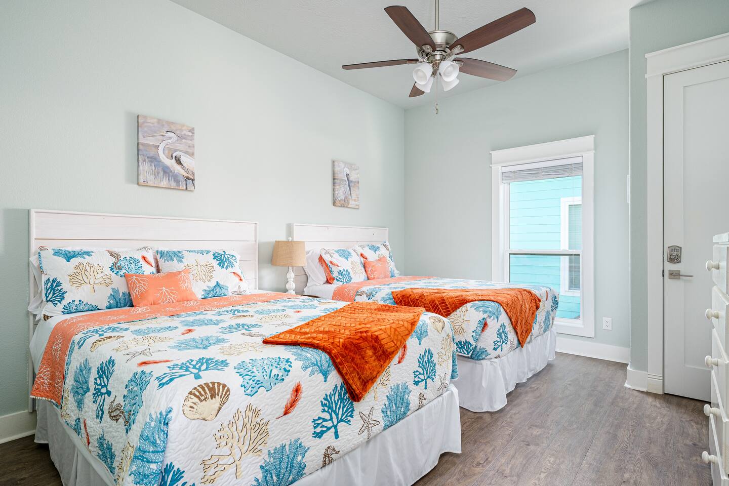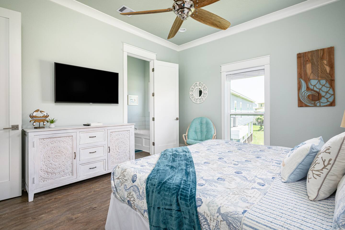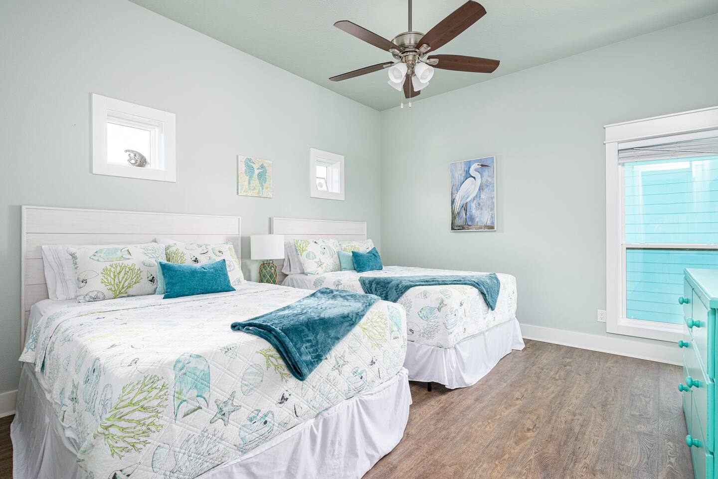 Let's Get Nauti is a spacious and beautifully decorated home that offers: • 4 Bedrooms. Each room is designed with relaxation in mind, providing cozy beds and ample storage. • Gourmet Kitchen: Fully equipped with modern appliances, perfect for preparing delicious meals. • Hot Tub: Relax in the 6-person hot tub by the Tiki Bar. This makes the downstairs area a perfect play area. • BBQ Area: Enjoy outdoor dining and grilling with family and friends in our designated BBQ area. • Tiki Bar: Unwind with a refreshing drink at our tiki bar, creating the perfect tropical atmosphere. • Expansive Deck: Take in the stunning water views from our large deck, complete with comfortable seating for everyone. • Dedicated Workspace: Work or study from the desk and chair set up for you to take a vacation and get your work done. Whether you're looking to relax by the water, entertain guests, or explore the local attractions, our beach house has it all. Book your vacation today and experience the perfect blend of luxury and comfort! The space GUEST ACCESS: ֍ Self-check in with your code, sent 48 hours before check in THE SPACE: ֍ 4-bedrooms, 2 baths, 9 beds – sleeps 14 ֍ 1 full kitchen with all the comforts of home ֍ Gulf views from the deck – relax in the hammock or enjoy a cocktail at the bar top table ֍ Large outdoor area downstairs with a 6-person Hot tub, Tiki bar, games, and multiple seating options ֍ Beach towels, chairs, wagon, and assorted beach toys ֍ Giant Connect Four, corn hole, ladder ball, spike ball ֍ Outdoor shower station ֍ Dog friendly with Fenced Dog run ($230) additional dog fee up to 2 dogs - Make sure to add your dog when adding count. The button is right below the kids button) ֍ Charcoal grill - BYOC ֍ Family-friendly bunk room with individual lights and outlets ֍ High chair, pack-n-play, and kid-friendly utensils provided ֍ Smart TVs in all bedrooms and living room– bring your own log-ins for streaming services. No cable tv is provided. ֍ Wi-Fi, puzzles, books, games for non-beach days ֍ All linens for beds and bath towels are included ֍ Starter set of dishwasher and laundry detergent, toilet paper, paper towels, hand soap at all sinks, and coffee (coffee on us the first morning! Small stash of K-cups, cream, sugar and filters provided) WHERE YOU’LL STAY: ֍ Master suite King size bed, dresser, Smart TV, Ceiling fan, Closet, Luxury en suite bathroom with shower, separate deep bathtub, granite countertop. Highchair and pack in play are in the closet. ֍ Front bedroom 2 Queen size beds, Smart TV, Ceiling fan, dresser with drawers ֍ Bunk room 2 Twin over Twin bunk bed each with a light and power outlet, Stairs in the middle, Smart TV, fan ֍ Back room 2 Queen size beds, Smart TV, Ceiling fan, dresser with drawers, closet COMMON AREAS ֍ Kitchen Dishes, cutlery, and glasses for 14, Pots and pans, multi-option coffee pot (single brew with K-cup; whole pot drip), baking dishes (sheet pans, glass baking dish), Air Fryer, Crock Pot, Rice Cooker, waffle maker, electric griddle, spice cabinet, mixing bowls, reusable storage containers, dine in attached dining area or at kitchen island ֍ Living room Comfortable seating for 6+, Smart TV and stand with games, books and puzzles, Coffee table ֍ Laundry room Stackable washer and dryer, Iron and ironing board, starter pack of laundry detergent ֍ Deck View of the gulf, Bar top table with 4 tall chairs, 6 Adirondack chairs, hammock, gate at stairs for safety ֍ Bottom level Outdoor sand shower, Charcoal grill (bring your own charcoal), beach gear – chairs, beach wagon, umbrella, small carry coolers and assorted toys. Games: corn hole, ring toss, giant Connect-4, giant Jenga, Spike ball. Outdoor dining table with seating for 12. Tiki bar with 4 stools, fenced dog run and parking for 6 cars. MISCELLANEOUS: ֍ Please read through and ensure you agree to everything in the ***SHORT-TERM RENTAL AGREEMENT and ADDENDUM A - RENTAL RULES*** in the House Rules section. This is important to keep you safe and informed. ֍ Hot Tub cleaning occurs every Tuesday. The technician will need access to the hot tub only. ֍ If you are planning a drunken party, please choose a different location. We have some full-time resident neighbors. Quiet hours are 10:00 pm to 7:00 am. ֍ Person booking must be at least 24 years old and have a government issued photo ID on file with the booking platform. The booker must stay at the property for the duration of the stay. ֍ If you are having an event, please reach out to us and let us know what type of event you would like to have. Additional cleaning fees could apply. Our cleaner will make that determination. ֍ Dog friendly for up to 2 dogs less that are fully house and crate trained. Dogs are to use the bathroom only in the fenced dog run, not on the deck or on the concrete. Please pick up your dog’s mess and throw away. Supplies are provided. You will need to provide a crate for your dog as they are not to be left unattended while you are not home. NO dogs are allowed on the furniture. If your dog is allowed to sleep with you, our home may not be the best fit. Please don’t sneak a dog in. Our cleaning service can tell and charge us extra. That few will be charged back to you. Do the right thing and inform of us your dog. ֍ On your way in, stop at The Big Store for all your needs. They have groceries, supplies and a parking permit to park on the beach. The Big Store is a few minute drive from Let’s Get Nauti. ֍ If you don’t want to take your car to the beach, you can Rent a golf cart from Jay's Golf Carts. They'll deliver and pick up. ֍ Get a Day Pass to Margaritaville for year round heated pools, concerts, arcade, and swim up pool bar. ֍ Watch the dolphins as you ride over on the Ferry! ֍ Head back to Galveston on the 24 hour Free Ferry for night life! PROTECT YOUR VACATION WITH TRAVEL INSURANCE! We highly recommend purchasing travel insurance for your vacation rental stay. Whi